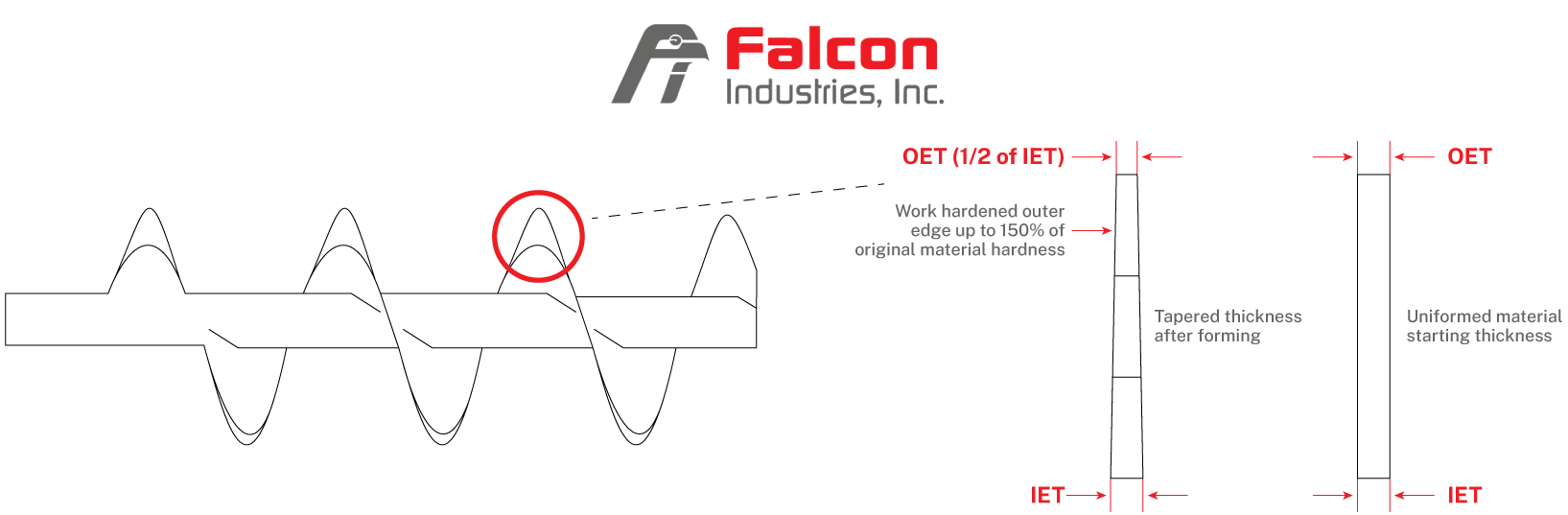 - Strain hardened outer half of the flight face, offering 50% improved hardness over unformed stock. Providing an enhanced life of the product.